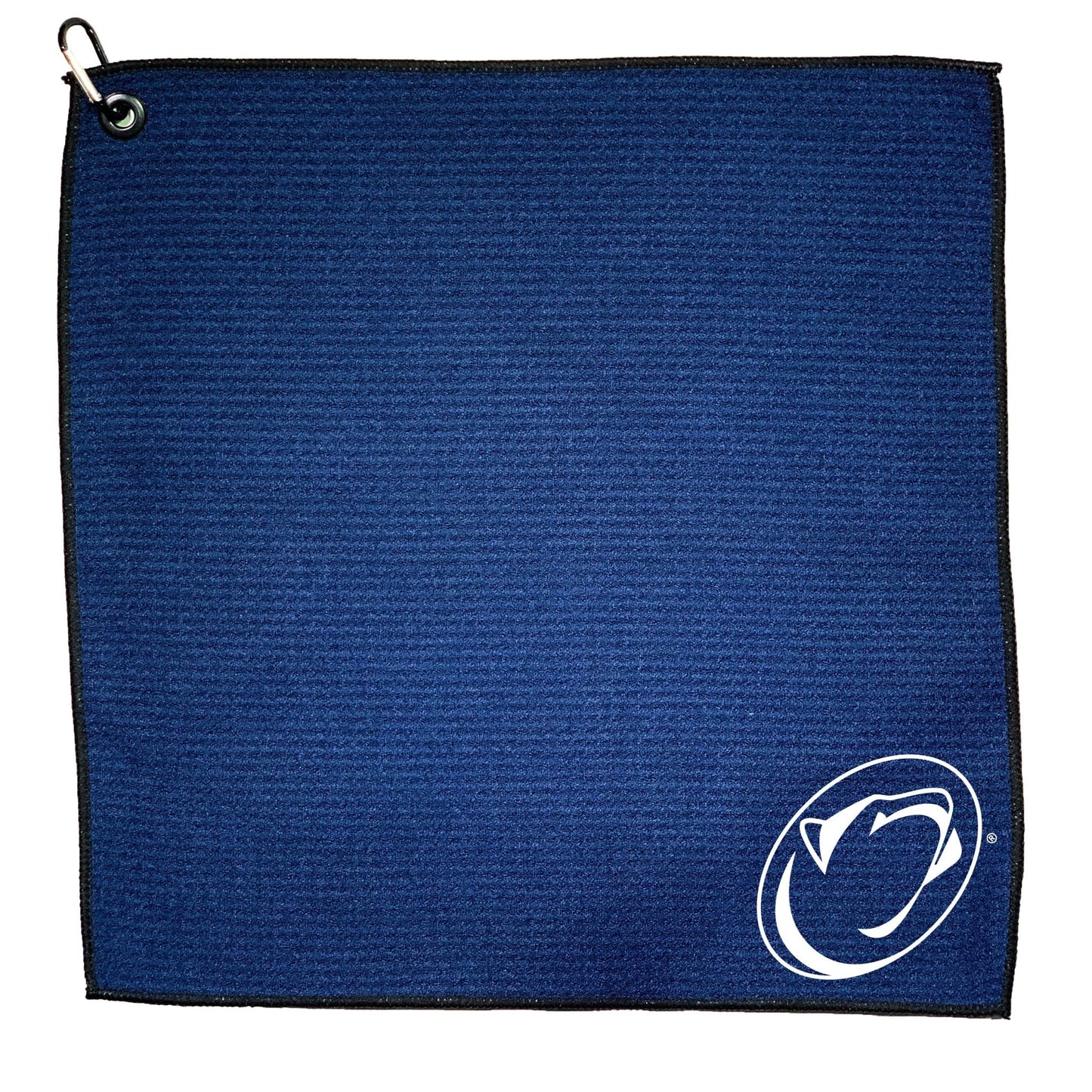 Microfiber 15X15" towel features handy carabiner for easy attachment and removal from golf bags and full color printed logo.