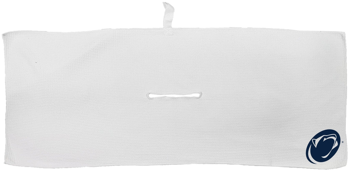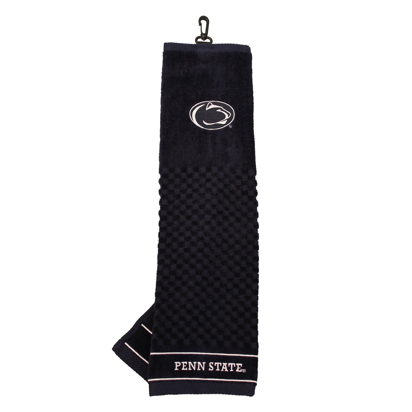 Tri-Fold 16" x 22" towel features a checkered scrubber design for easier cleaning, swivel clip for easy attachment and removal from golf bags and a full color embroidered logo. 100% Cotton