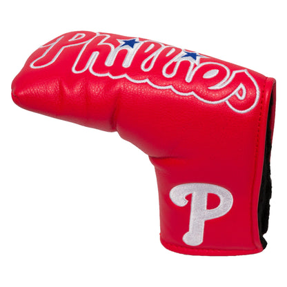 The Blade Putter Cover fits virtually all blade putters and includes 2 location embroidery and fleece lining for extra club protection. Made of buffalo vinyl and synthetic suede like material.