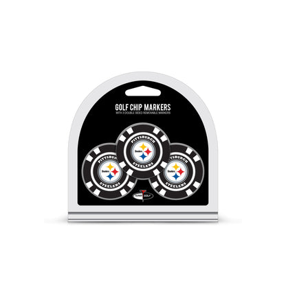 3 pack includes 3 golf chip ball markers with a team logo on the back of the chip and a strong magnet to hold the removable double sided enamel fill ball markers.