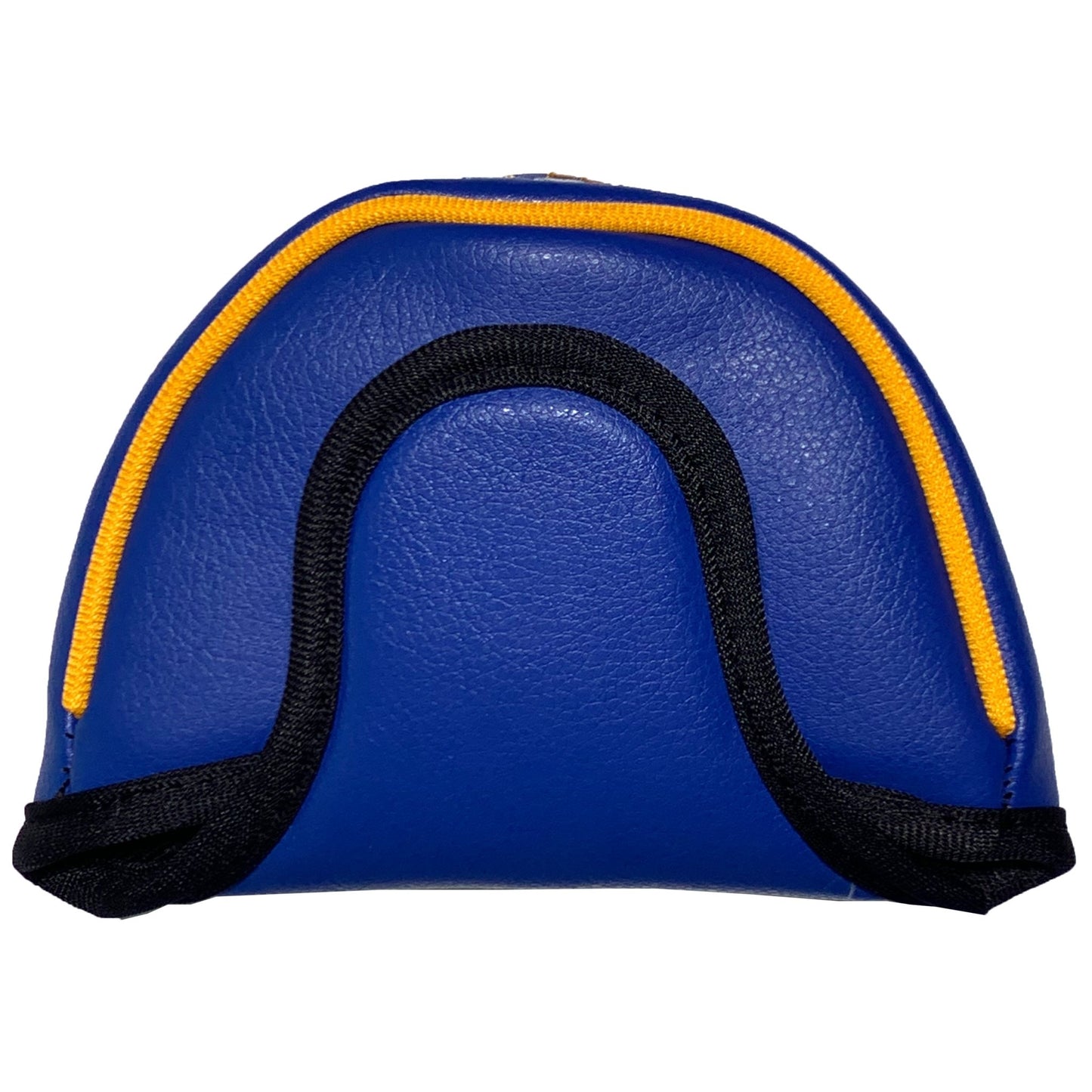 The Blade Putter Cover fits virtually all blade putters and includes 2 location embroidery and fleece lining for extra club protection. Made of buffalo vinyl and synthetic suede like material.