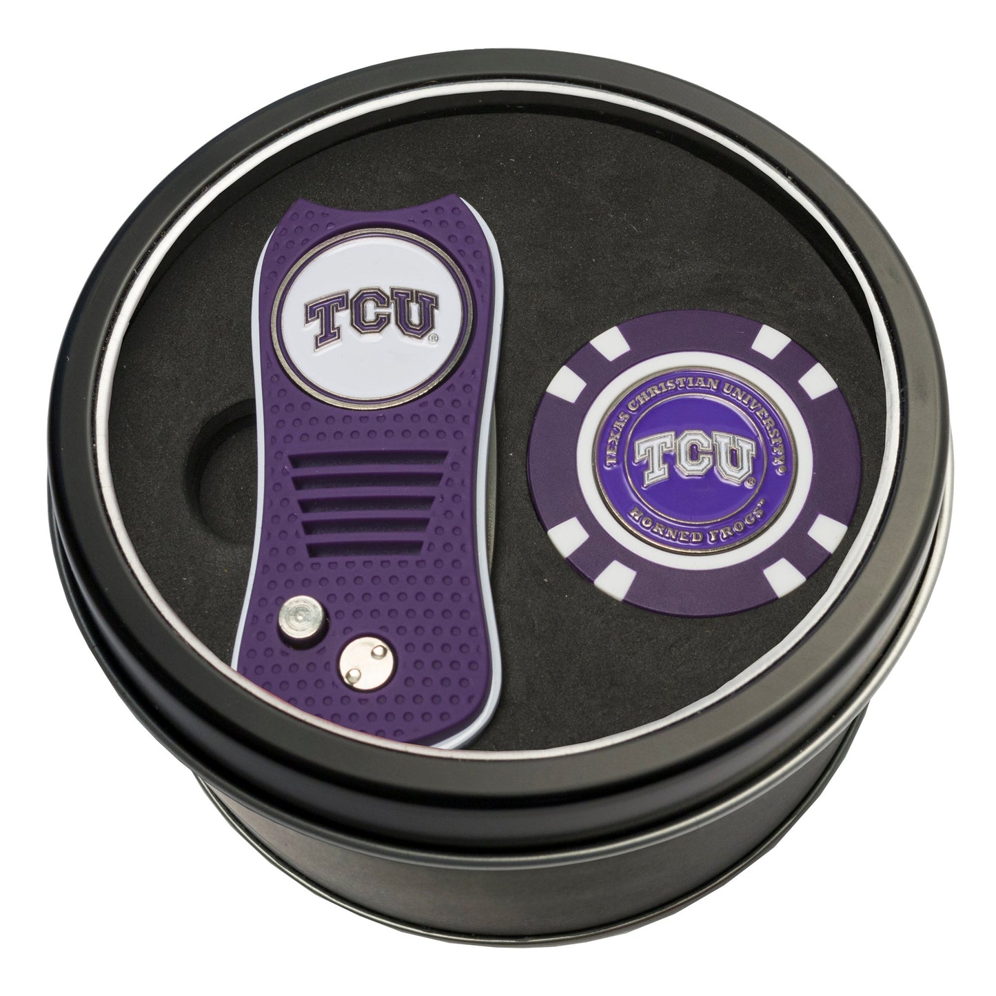- Poker Chip Tin includes switchblade style retractable divot tool with double-sided magnetic ball marker, 1 double sided team poker chip