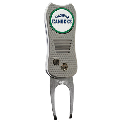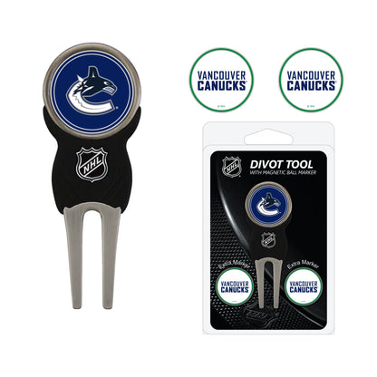 Signature divot tool includes 3 double-sided enamel fill ball markers, show off your team spirit while on the green!