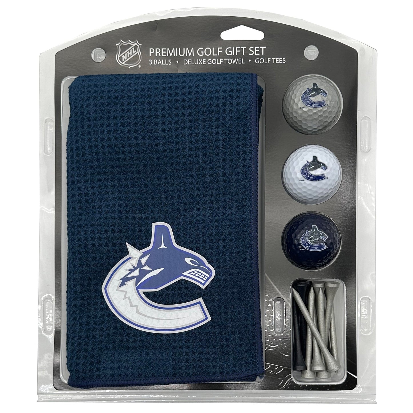 - Microfiber Towel Gift Set includes 16x40 microfiber towel (team color or white) with printed logo, 3 golf balls (colors may vary), and set of 10 tees