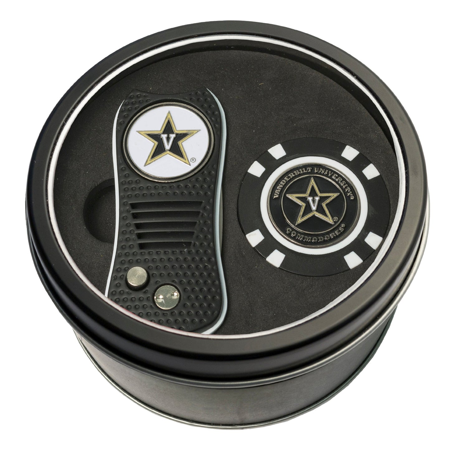 - Poker Chip Tin includes switchblade style retractable divot tool with double-sided magnetic ball marker, 1 double sided team poker chip