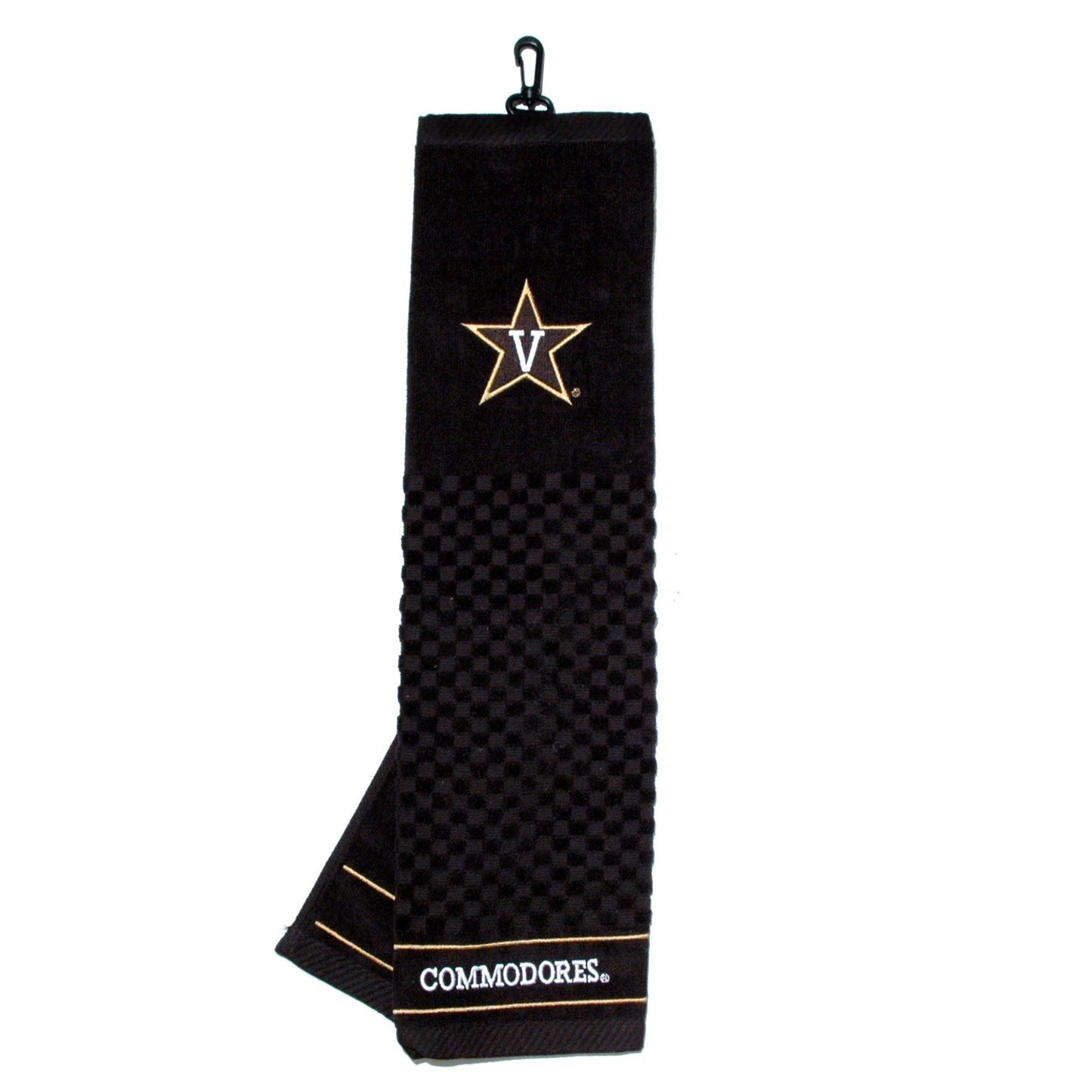 Tri-Fold 16" x 22" towel features a checkered scrubber design for easier cleaning, swivel clip for easy attachment and removal from golf bags and a full color embroidered logo. 100% Cotton