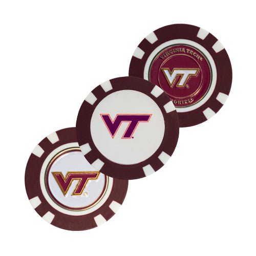3 pack includes 3 golf chip ball markers with a team logo on the back of the chip and a strong magnet to hold the removable double sided enamel fill ball markers.