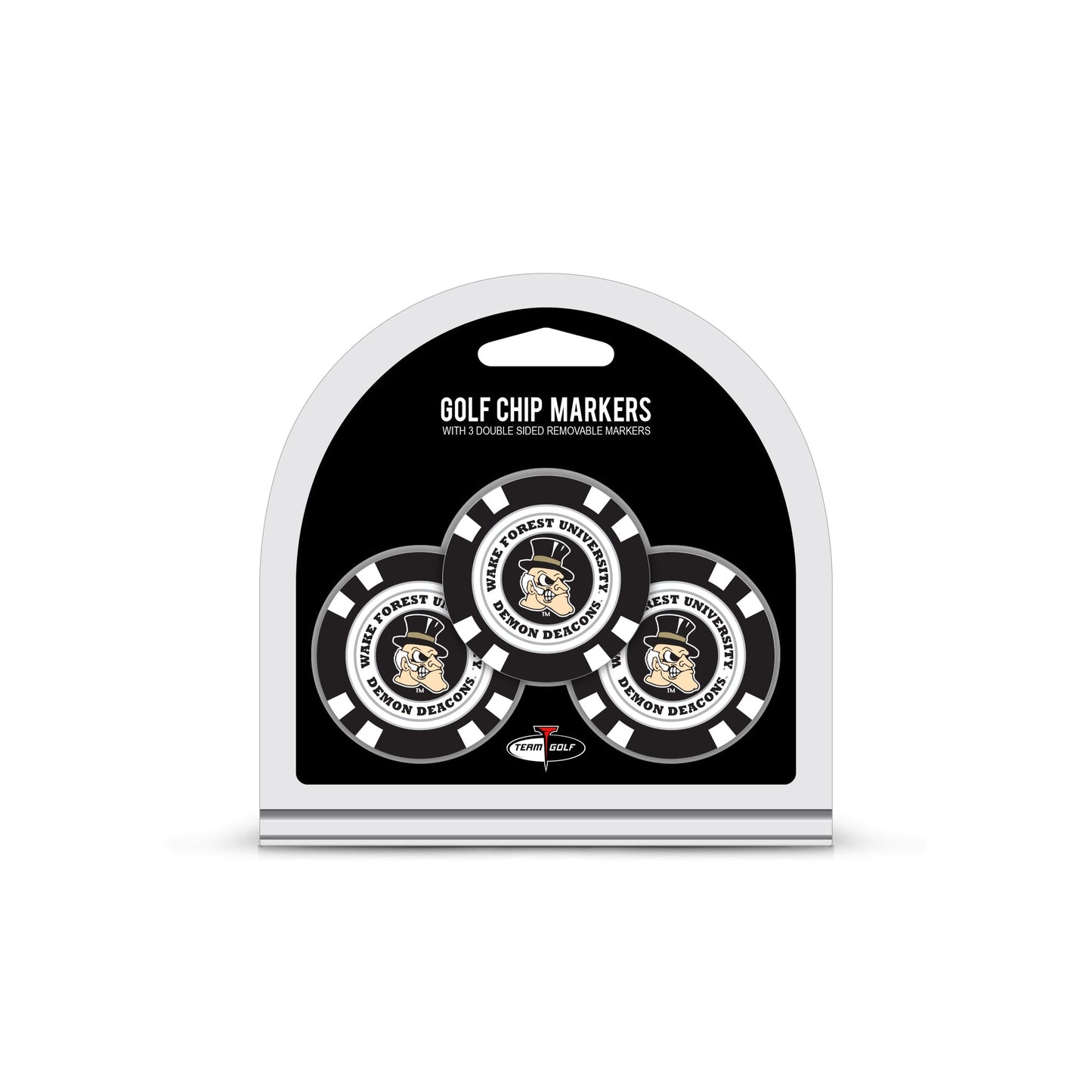 3 pack includes 3 golf chip ball markers with a team logo on the back of the chip and a strong magnet to hold the removable double sided enamel fill ball markers.