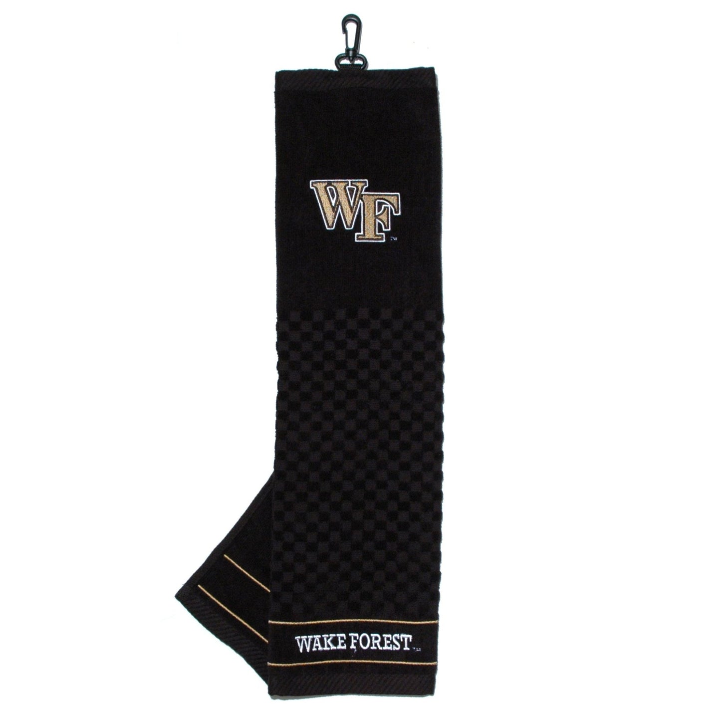 Tri-Fold 16" x 22" towel features a checkered scrubber design for easier cleaning, swivel clip for easy attachment and removal from golf bags and a full color embroidered logo. 100% Cotton