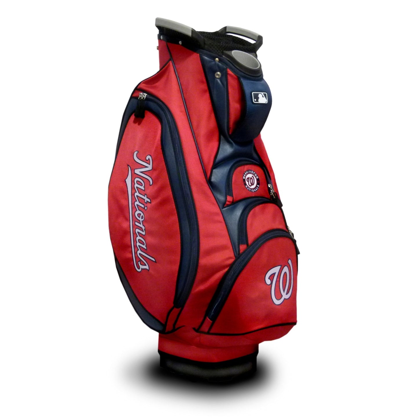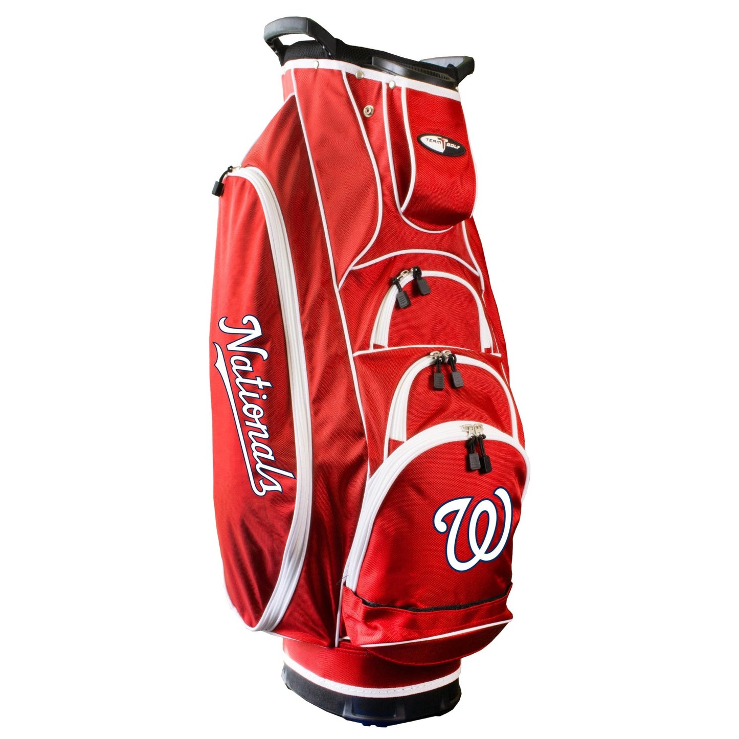 This cart bag features 10-way full length dividers, 3 bottom compartments, an oversized putter well, padded straps, removable rain hood, towel ring and umbrella holder; It comes with five zippered pockets; One to hold valuables and another cooler pocket to store drinks.