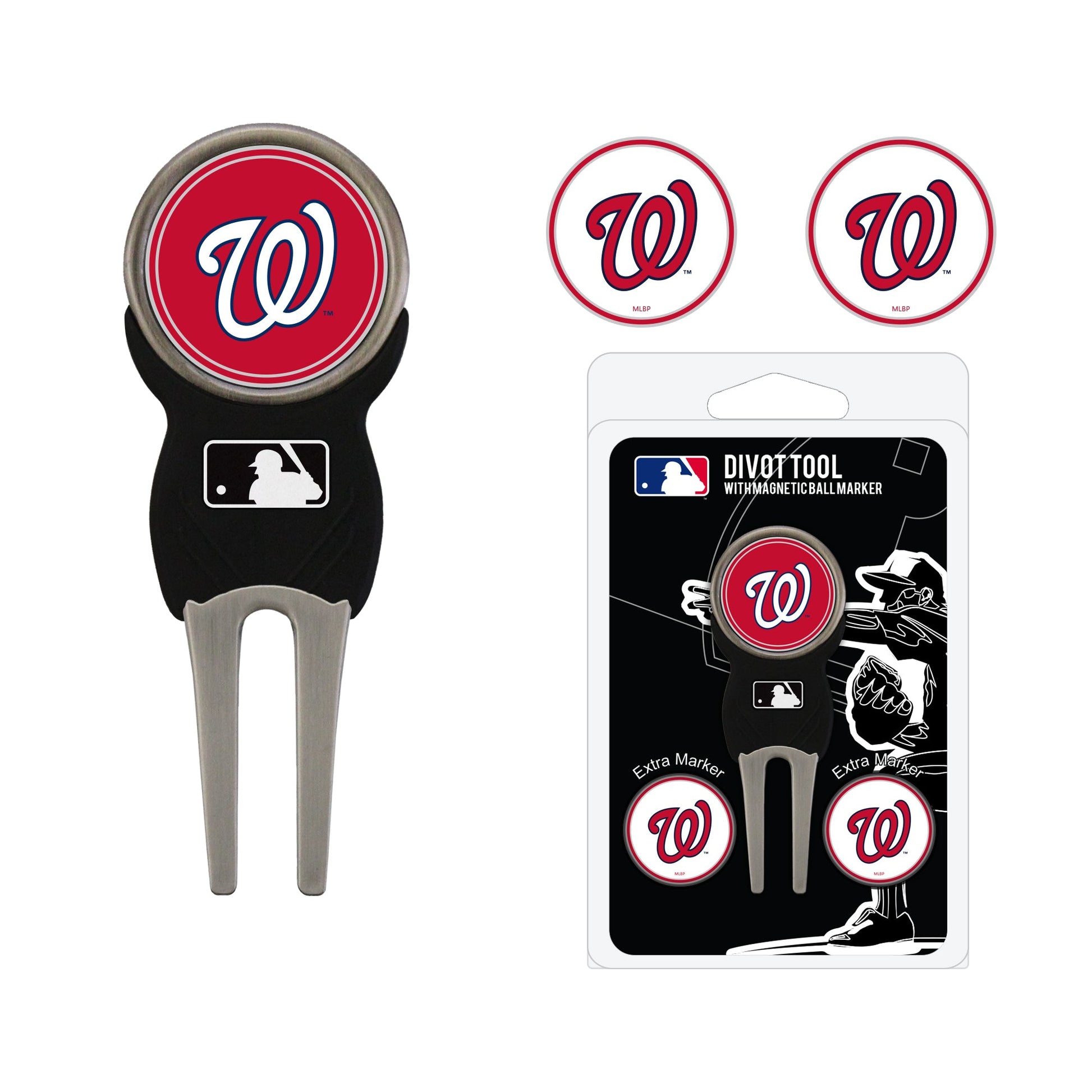 Signature divot tool includes 3 double-sided enamel fill ball markers, show off your team spirit while on the green!