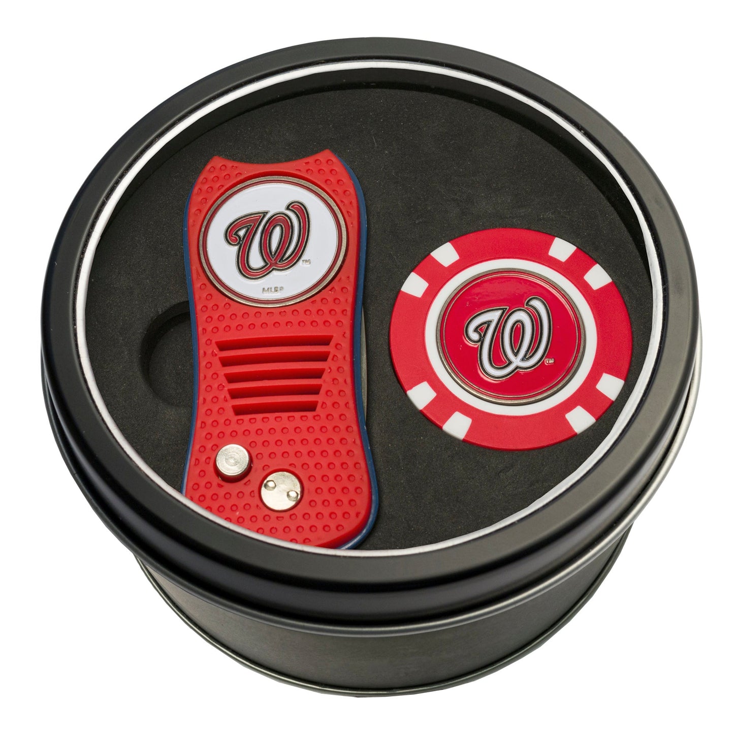 - Poker Chip Tin includes switchblade style retractable divot tool with double-sided magnetic ball marker, 1 double sided team poker chip