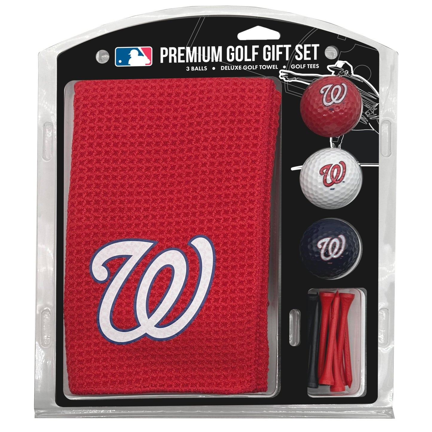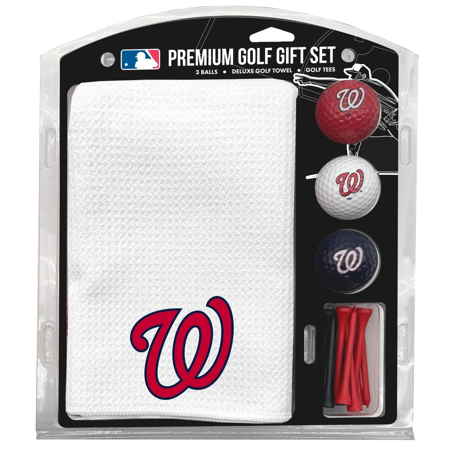 - Microfiber Towel Gift Set includes 16x40 microfiber towel (team color or white) with printed logo, 3 golf balls (colors may vary), and set of 10 tees