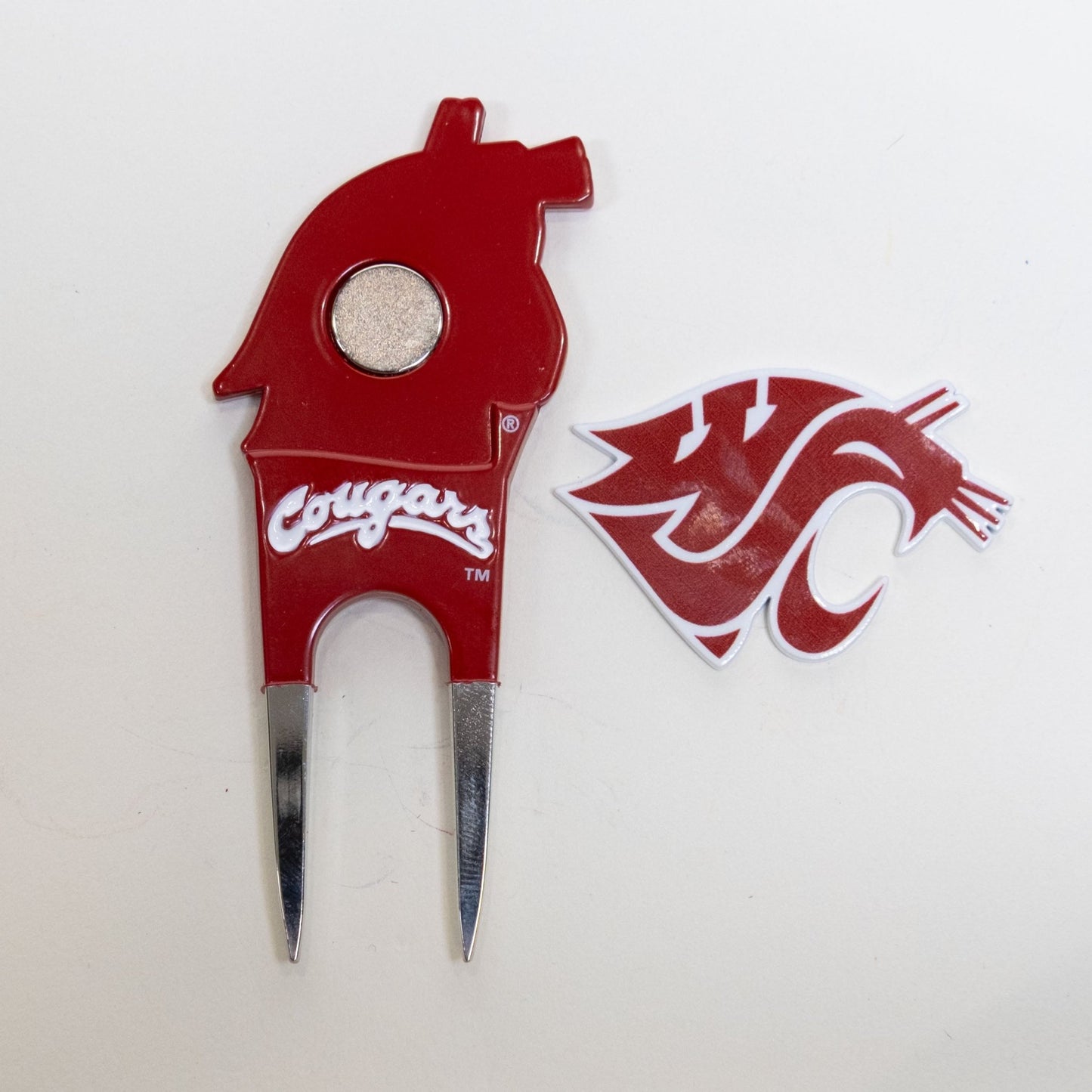 Signature divot tool includes 3 double-sided enamel fill ball markers, show off your team spirit while on the green!