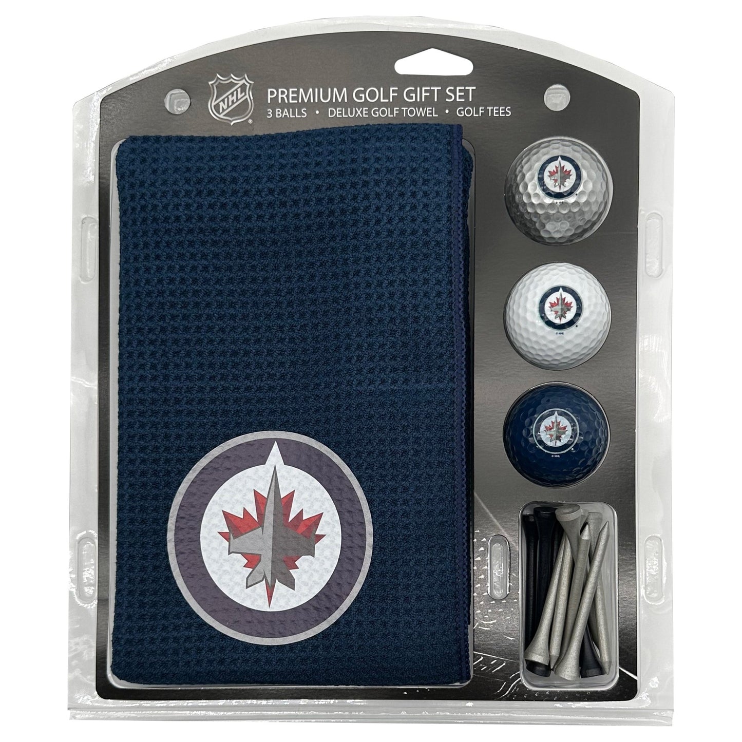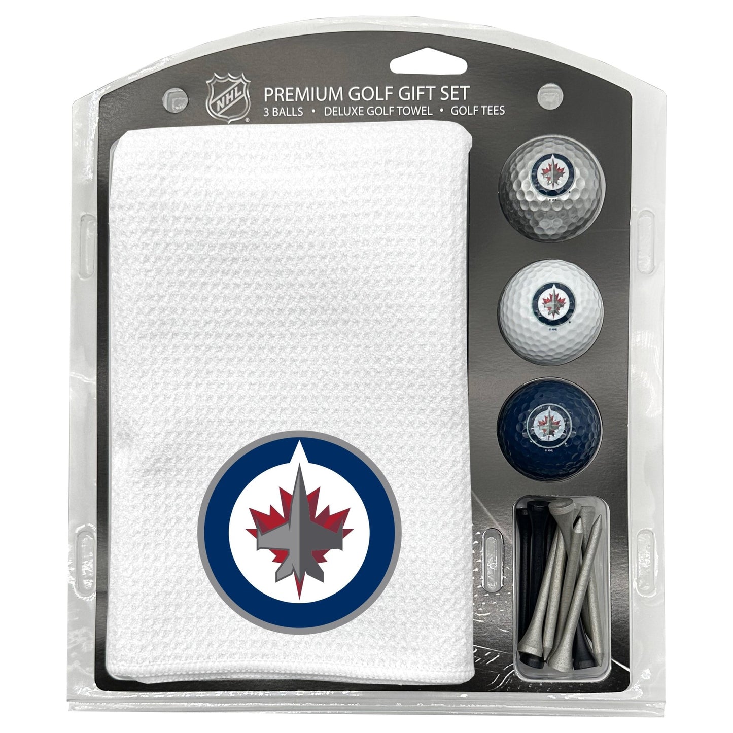 - Microfiber Towel Gift Set includes 16x40 microfiber towel (team color or white) with printed logo, 3 golf balls (colors may vary), and set of 10 tees